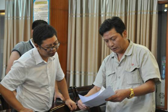 2015年8月21日,博白縣委組織部長(zhǎng)吳厚強(qiáng)在龍?zhí)舵?zhèn)人大主席林國(guó)偉的陪同下來(lái)我司檢查驗(yàn)收非公企業(yè)黨建工作“百日攻堅(jiān)”的落實(shí)情況。