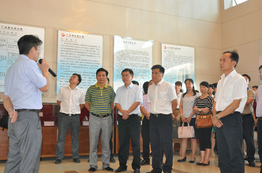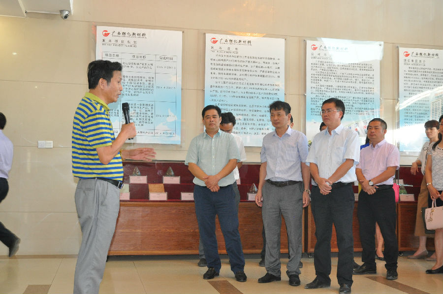 2016年10月9日上午,博白縣縣委書記羅宗光、縣長(zhǎng)羅培球帶領(lǐng)博白縣四大班子、各機(jī)關(guān)各部門負(fù)責(zé)人、各鄉(xiāng)鎮(zhèn)書記鎮(zhèn)長(zhǎng)共計(jì)130余人,在玉林市龍?zhí)懂a(chǎn)業(yè)園召開“百日攻堅(jiān)重點(diǎn)項(xiàng)目工作推進(jìn)會(huì)議”并參觀園區(qū)重點(diǎn)企業(yè)——廣西銀億新材料有限公司。