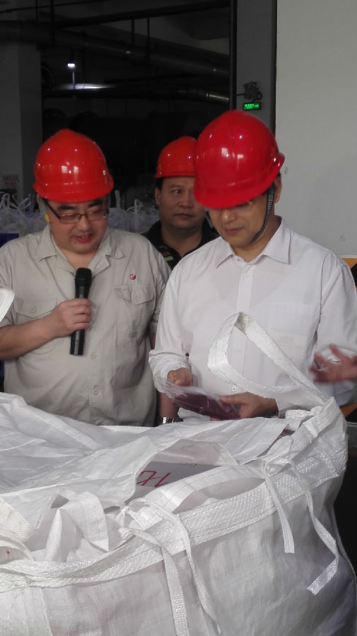 銀億集團公司副總裁施偉光專程從寧波趕來、廣西公司董事長王小豐、常務(wù)副總張學(xué)飛等公司領(lǐng)導(dǎo)熱情接待莫恭明書記一行,并陪同參觀了鈷鹽車間。