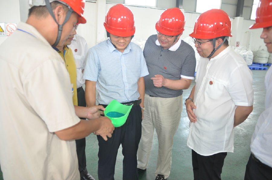9月12日,玉林市委常委、組織部長覃天衛(wèi)在玉林龍?zhí)懂a(chǎn)業(yè)園工委書記黃維的陪同下來廣西銀億調(diào)研,廣西公司董事長、黨委副書記王小豐,常務(wù)副總經(jīng)理、黨委委員張學(xué)飛,黨委委員、工會主席章群宏全程陪同先后到廣西公司職教中心和鎳鹽車間進行實地調(diào)研。